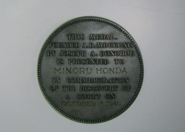 コメットハンターにとっては、まさに夢の賞であった。日本人では下保茂、山崎正光、長田政二、岡林滋樹、本田実の各氏が受賞した。ここに使用した写真のメダルは本田実氏が、1940年に彗星”岡林・本田彗星”を発見してもらったもので、鳥取県にある実家の金庫の中に隠れていたものが、実に70余年ぶりに発見された。