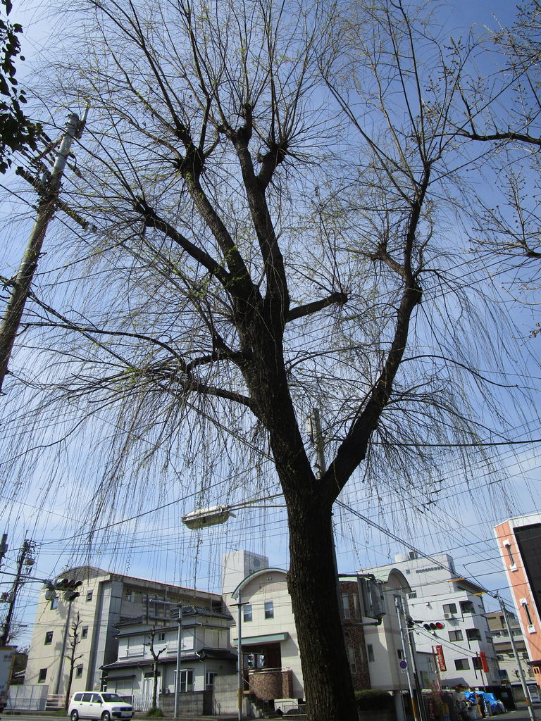 自宅のすぐそばにある児童公園です。よく散歩の途中でここを通りぬけます。早春を告げる柳の芽が一斉に吹いています。しかし冬名残の寒波があって、北山には白い雪雲が去来しています。