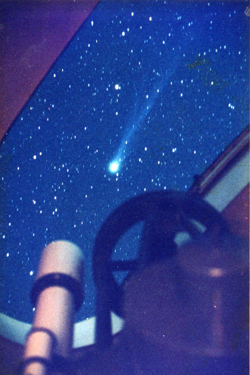 芸西村天文台の60cm反射望遠鏡のドームを開けた瞬間、立派な尾を引くホーキ星が飛び込んできて、腰を抜かさんばかりにびっくりしました。その名は百武彗星(1992b2)でした。