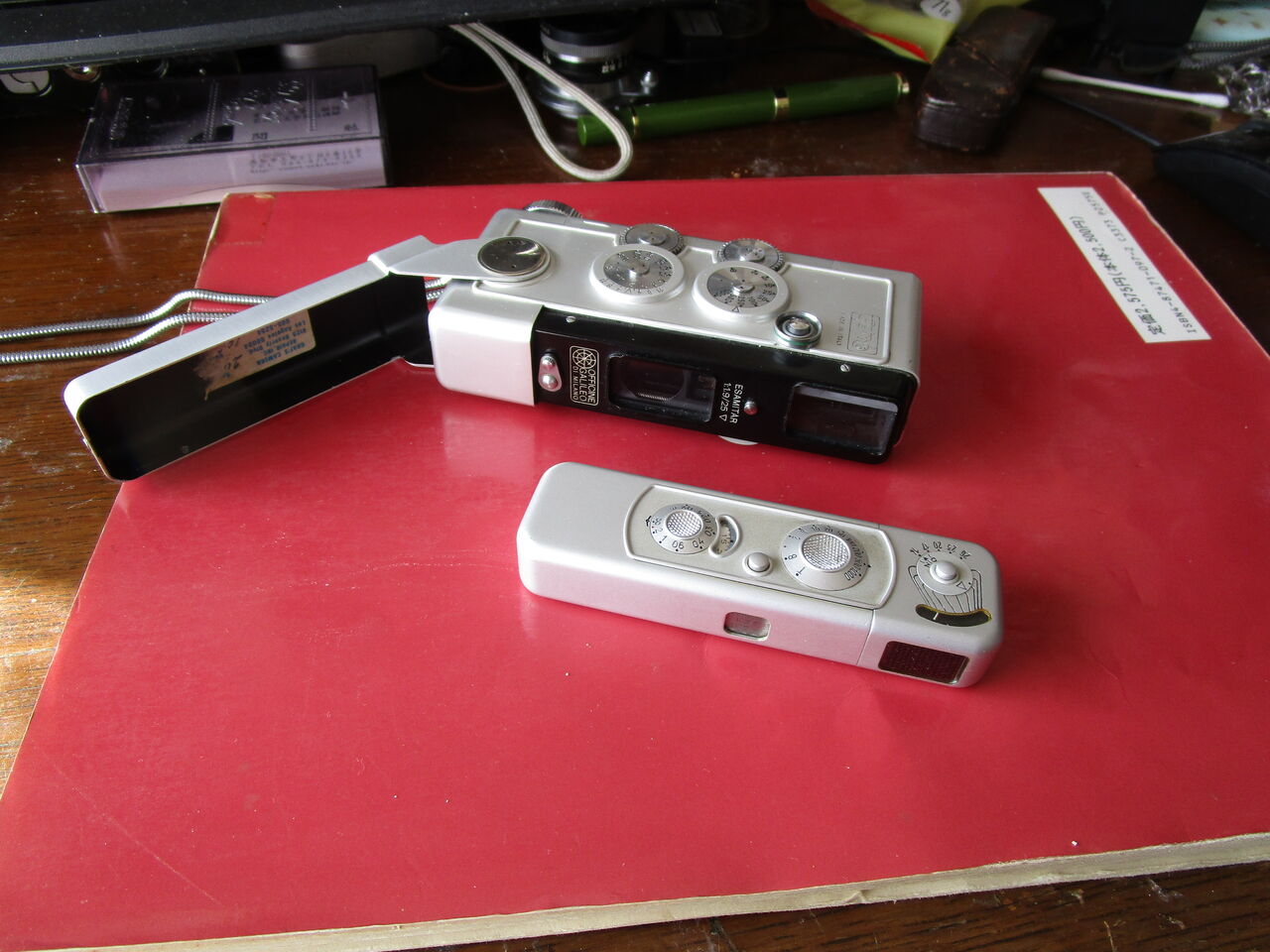 ここに私の愛用した珍品カメラがあるだろうかと思って、そのうちの最も珍しい2台をもっていきました。一台は戦前から戦後にかけてイタリアで製作された「ガミ16」です。16mm幅のフィルムを使う軽便なカメラで、砂漠の中での戦車戦での情報集めに活躍したと聞きます。もう一台はこれも戦前北欧ラトビアのリガで誕生した極小のスパイカメラで、その名はミノックス。そう!映画「ローマの休日」でも使われました。
