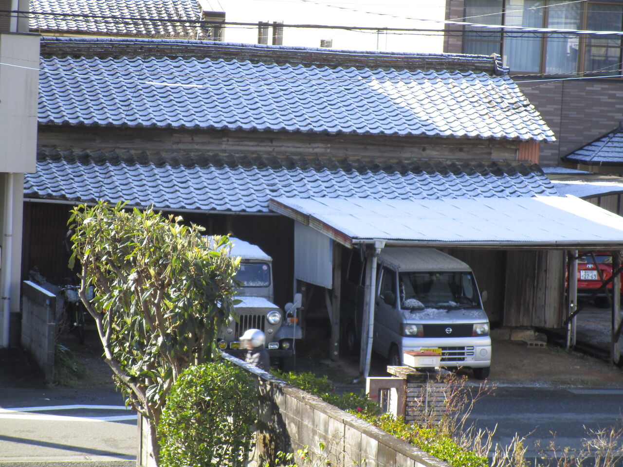 今年最強の寒波が訪れて、高知市も冬化粧をしました。この、雪を冠った日本瓦の家が「通町2丁目」の関家で、”イケヤ・セキ彗星”ほかの新彗星発見の場所です。遠くに見えている二階建てが、当時私が寝泊まりしていた家で、観測台は、その中間の中庭にありました。ここから「彗星発見!」の烽火が挙がっていたのです。そして世界に発信。