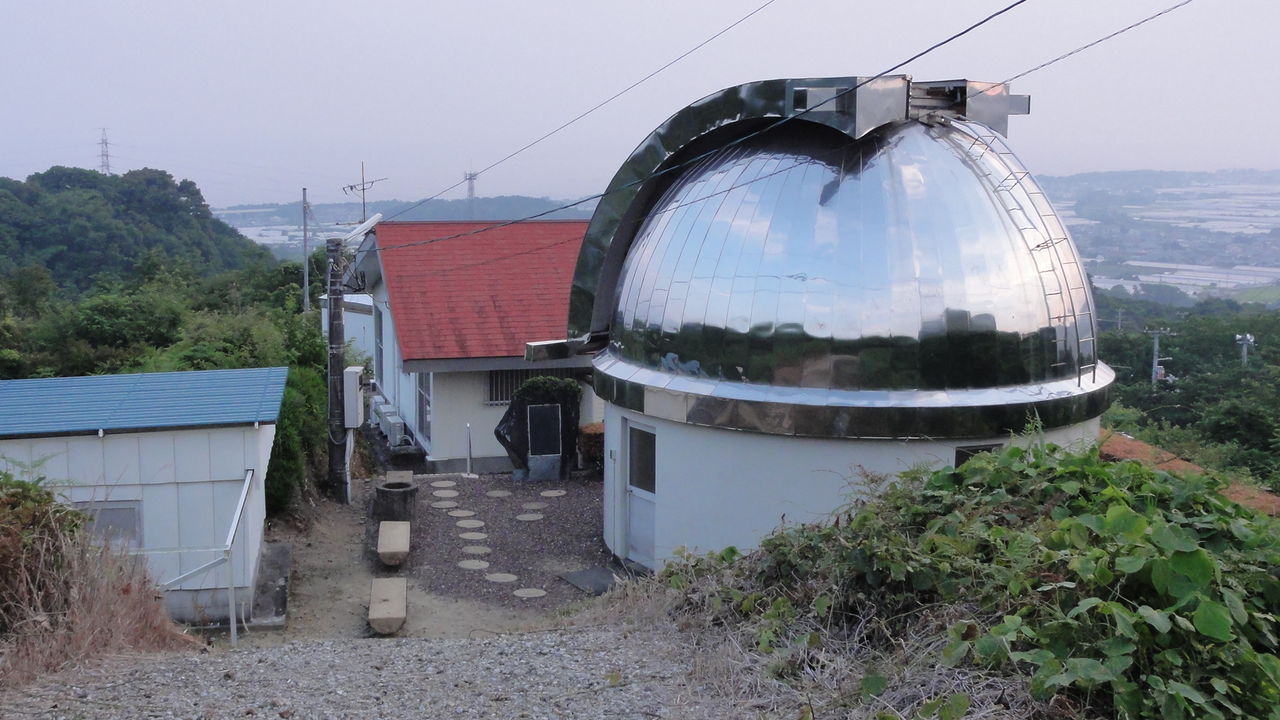 芸西天文台の丘からの眺めです。お天気の良い日には青い太平洋の海が見えます。反射望遠鏡の入っている白いドームの周りには多くの雑木がありますが、6月になるとドームの片隅にある野生の「やまももの木」が赤い実をつけます。一つちぎって口に入れると、まだ酸っぱい味です。その甘酸っぱい味が、ふと遠い昔の戦時中の事を思い出させてくれました。