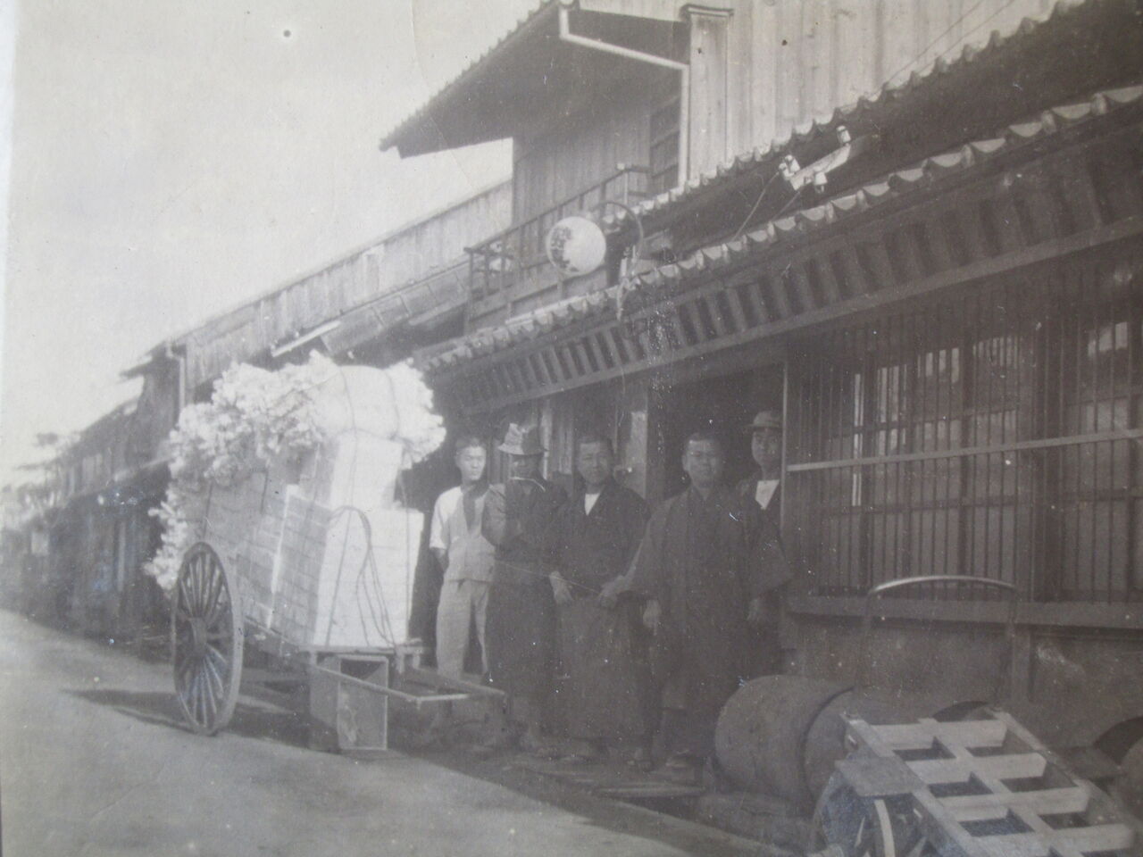 (大正9年頃の関製紙工場。製品の土佐和紙は大八車でJRの高知駅まで運んだ)