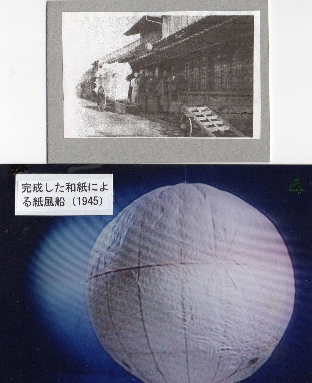 ここでシナリオが見えてきました。そうです!日本が敗戦前に窮余の一策として開発した、恐るべき「風船爆弾」の材料だったのです。巨大な紙風船は主に関東地方の映画館の椅子を取り除いて製作されました。和紙は二枚、こんにゃくで作った強力な糊で貼り合わせました。
