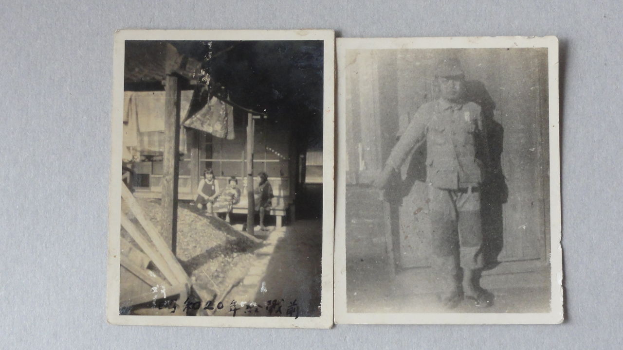 (当時の防空壕の貴重な写真が出てきた。家の中庭に掘ったもので「ボレックス」と言う当時の子供向きの安カメラで撮影したものである。また右は当時の中学生の筆者、学校の制服であるが、時局がら軍服姿である)