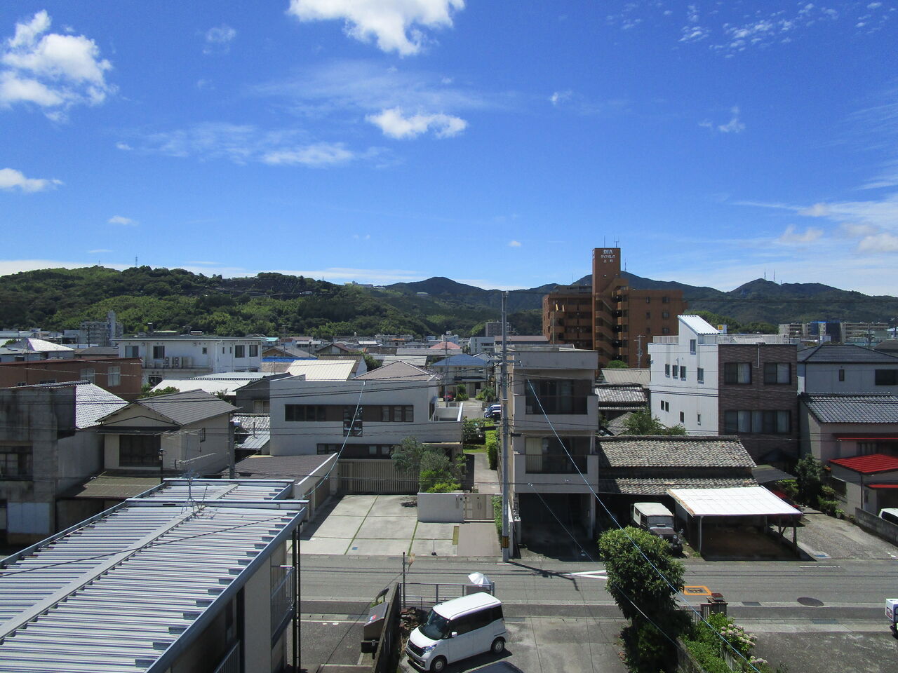 (写真は遠くに見える山脈の真ん中の山が鷲尾山。その向こうに浦戸湾が展開している)