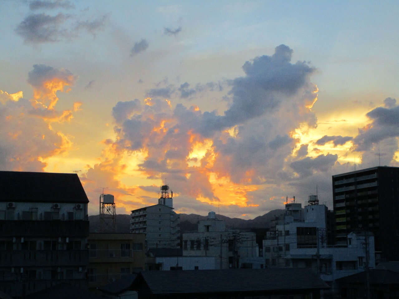 西空に展開した夕焼雲の複雑な様相をみていたら、ふと1945年7月4日に、ここ高知市が大空襲を受けたことを思い出した。人口18万の高知市は町も川も赤一色にそまり、まるで地獄絵そのものだった。しかしやがて七夕様を迎えて、宇宙には優しく平和な星が輝いた。8月15日には終戦となった。