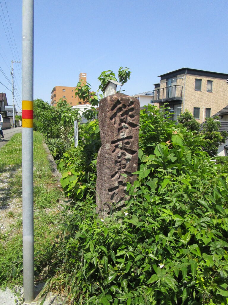 (堤防に立つ石の標識には”是ヨリ東、六ノ丁場”と彫ってある)