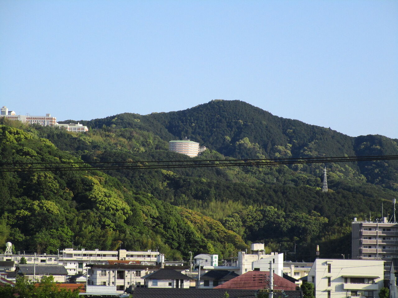 (写真は自宅屋上から真南の眺め。遠くの中央の山が鷲尾山)