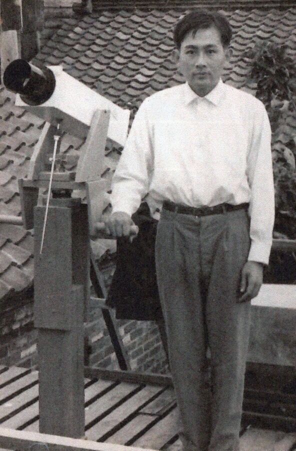 写真は、1961年10月11日、暁天のしし座に新彗星らしい謎の光芒を発見し、直ちに東京天文台に打電して、その結果を待っている期待と不安の入り乱れた姿です。彗星捜索を始めて11年。数多の困難を乗り越えてやっとたどり着いた発見であり、男になるのかならないのか、人生の大きな転機でした。