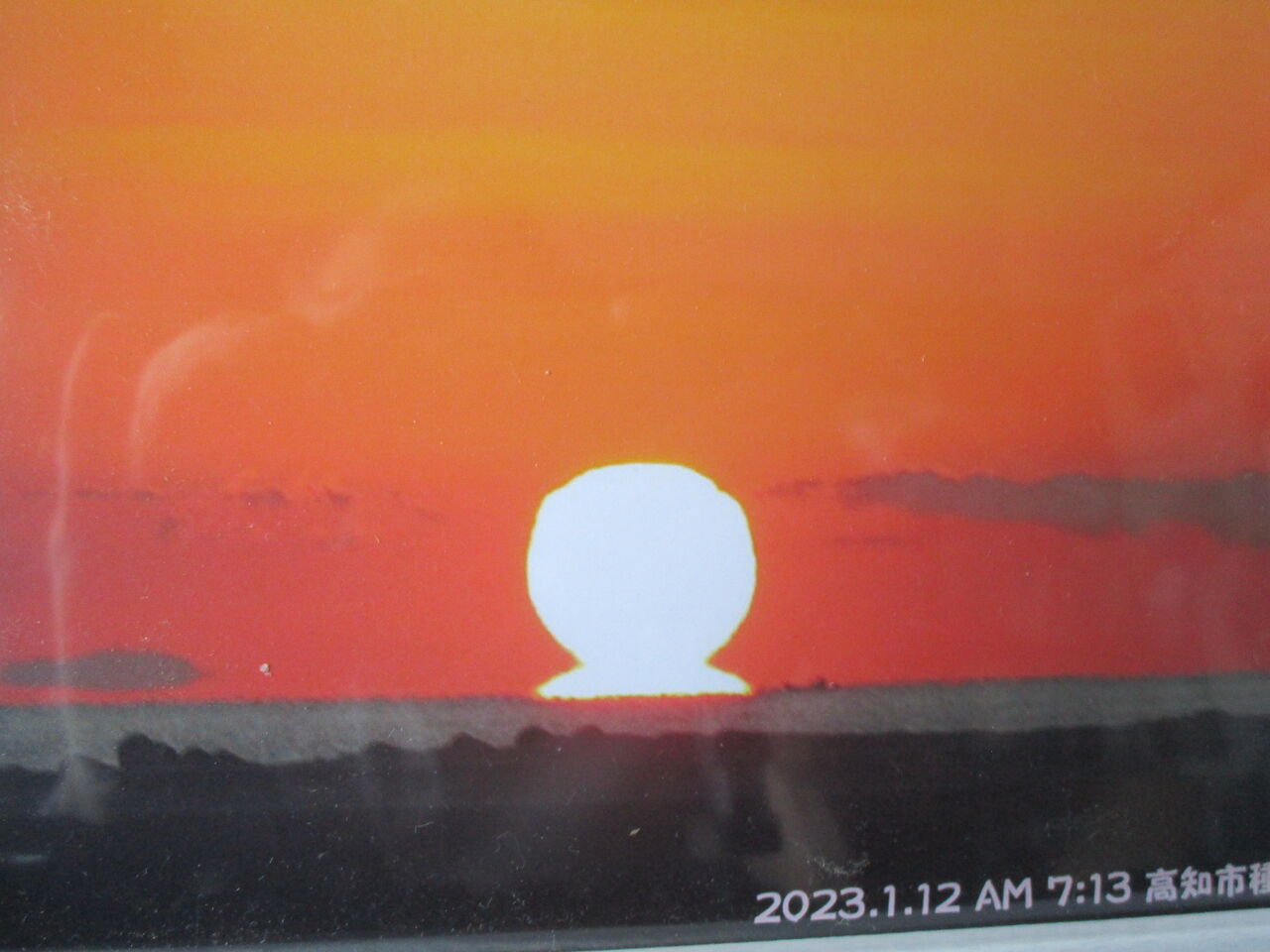高知県の海岸は昔から美しいだるま太陽が見える。そのほとんどは西の足摺岬方面の落日である。今回のだるま太陽は、めずらしく高知市の種崎の海岸から見えた「朝日のダルマ太陽」である。