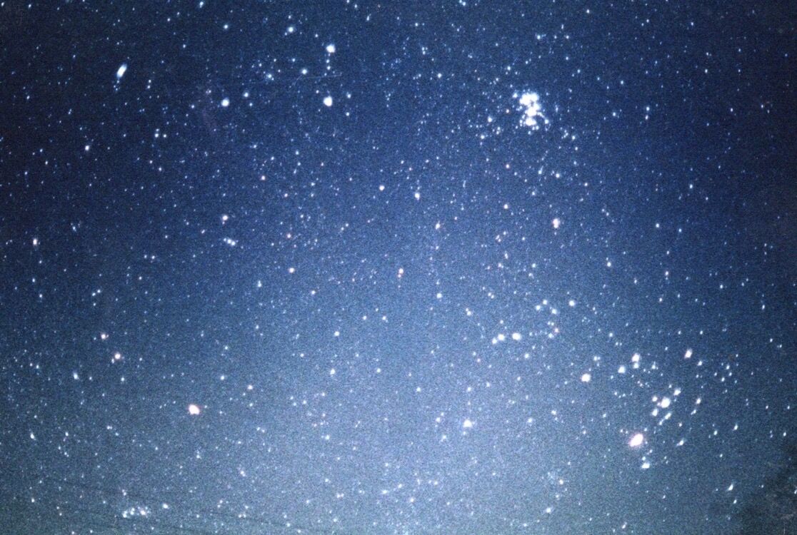 写真は1980年頃の晩秋初冬、芸西村の天文台で映したもので、有名なおうし座のスバルの近くに広い光芒として見えています。天体写真を撮影していて偶然気が付き、その光で写真がカブルのではないか、と心配するほどの輝きでした。
