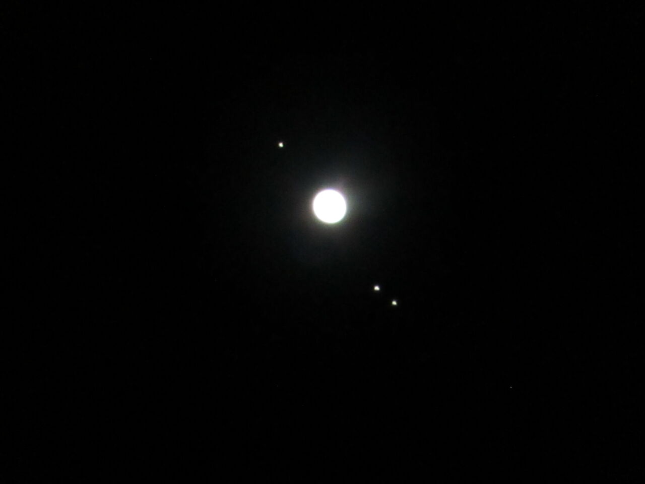 惑星では木星と土星が見ごろで、添付した写真は70cm300xで見た木星の姿です。写真では、表面の縞模様や、赤斑なんかのディテールがとんでいるようですが、眼視では比較的よく見えました。冬にしてはシーイングが良かったのが幸いしました。