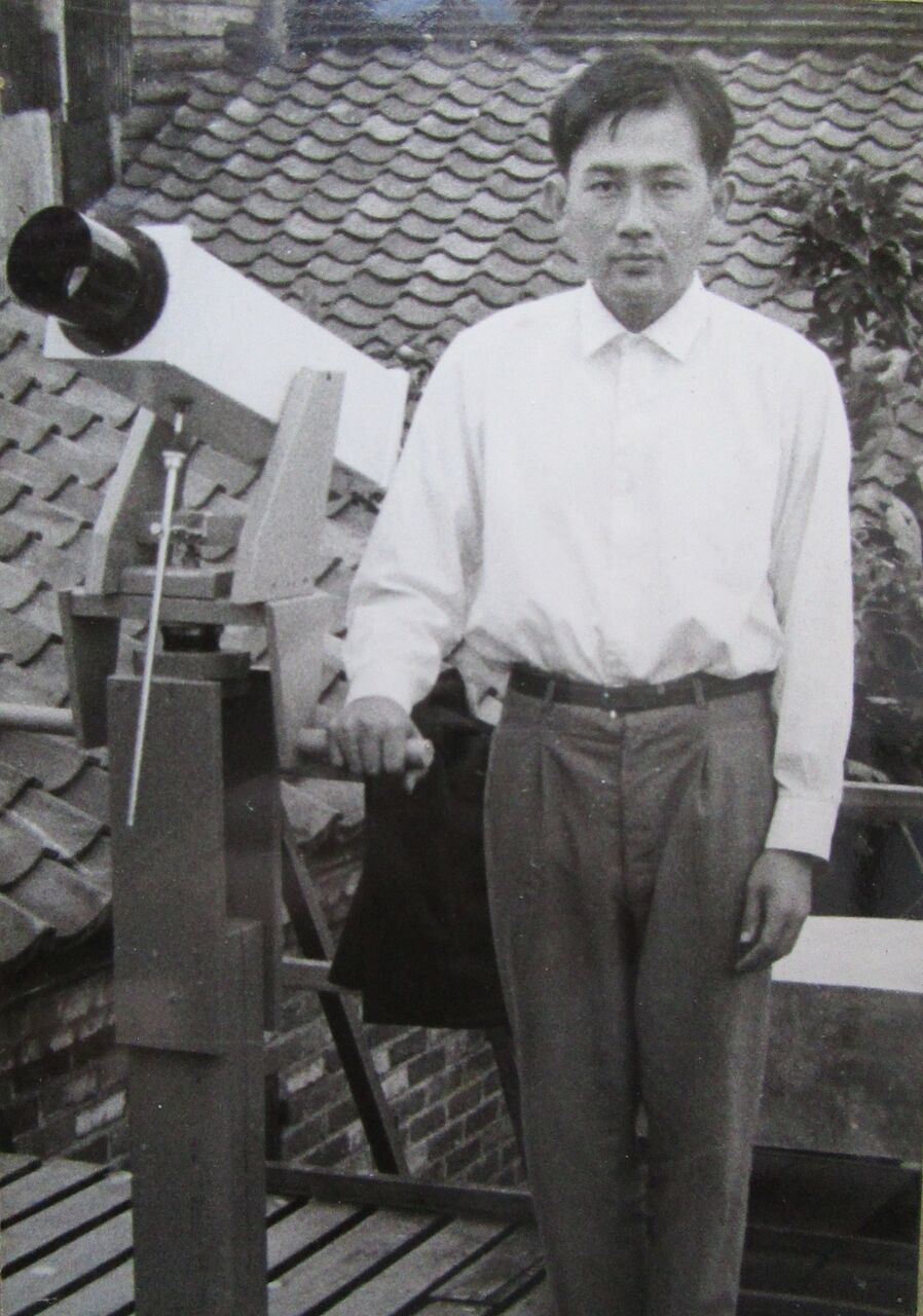 その朝、彗星らしき天体を発見して5時間後、私は再び中庭の観測台に立った。そして、手製のコメットシーカーと共に写真を撮った。しか私の心の中は動揺していた。イソゲナ天体望遠鏡に新天体らしい光芒が影を落としたのだ。世界中には、大小様々な望遠鏡が、新しい天体を求めて活動している。よりにもよって、土佐の高知の上町の施設に新彗星がやって来たのだ。