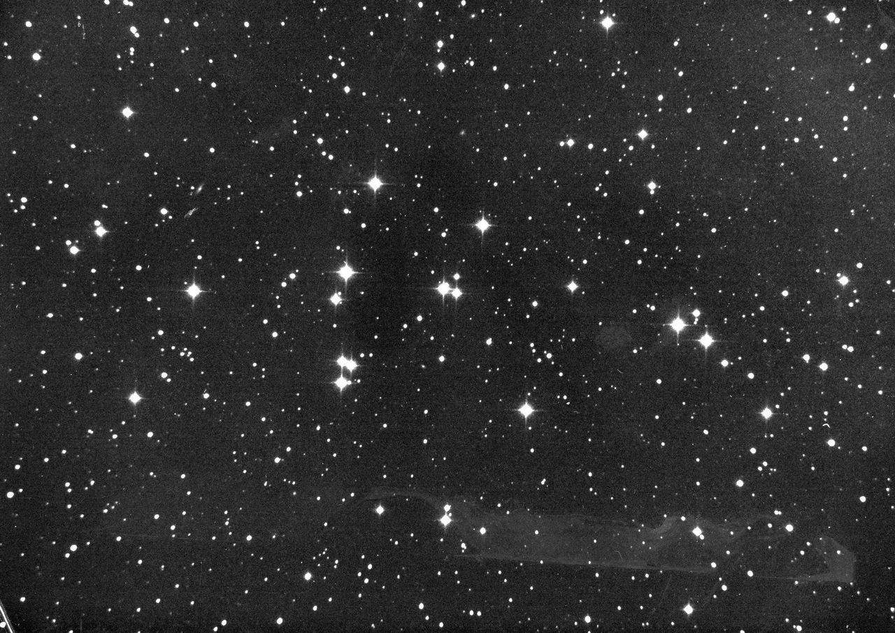 (写真は1981年12月、芸西の60cm反射望遠鏡で撮影したカニ座の″プレセペ散開星団”M44。肉眼でボーッと見え、不気味なことから、古代の中国では死人の行く場所とした。今が観望の好機で双眼鏡で見事。)