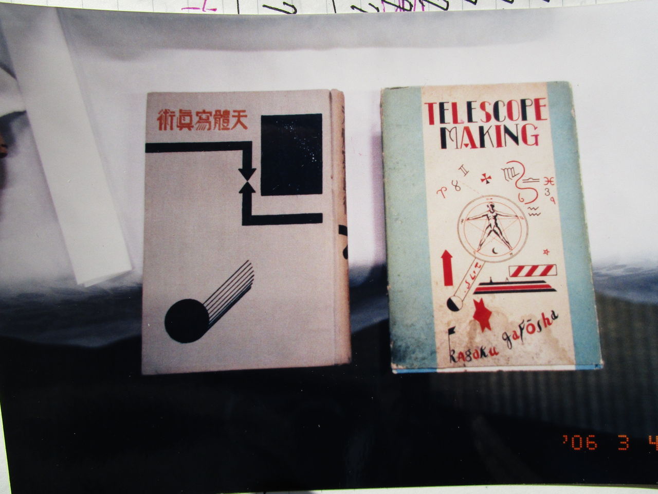 日本で最初に反射望遠鏡の研磨を始めた中村要氏と山崎正光氏の書いた貴重な資料です。どちらが先に手掛けたかは判然としません。中村氏は京都大学の花山天文台を舞台に活躍、日本での天体写真のパイオニアです。左が中村氏の「天体写真術」、右が山崎氏の「天体望遠鏡の製作」です。