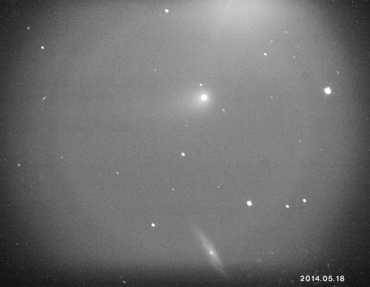 彗星と星雲(銀河)の同時に写っている写真です。彗星が幽かな尾をひいていますから、下の銀河とはっきり区別できますが、もし尾を流していなかったら、判定できるでしょうか?