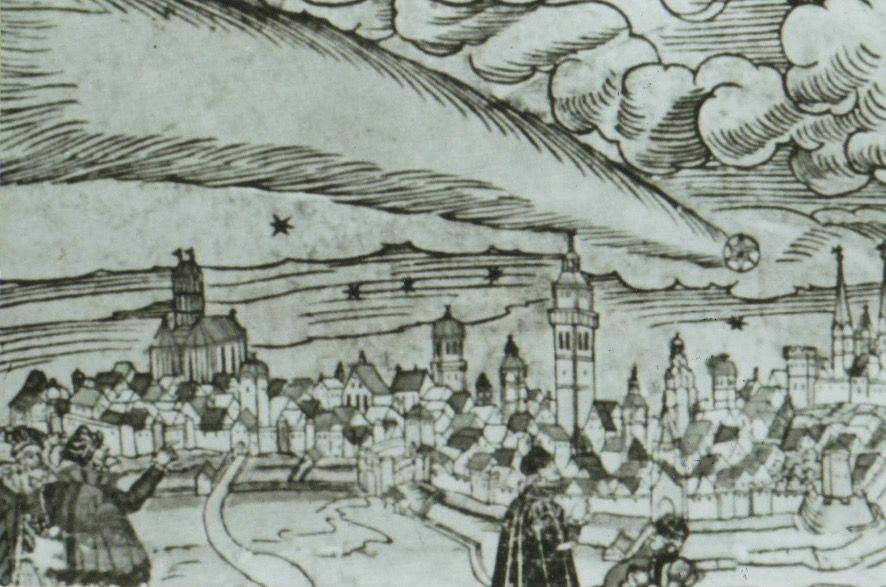 (写真は上が”大彗星現る"の古図。下が大彗星と地球の衝突)
